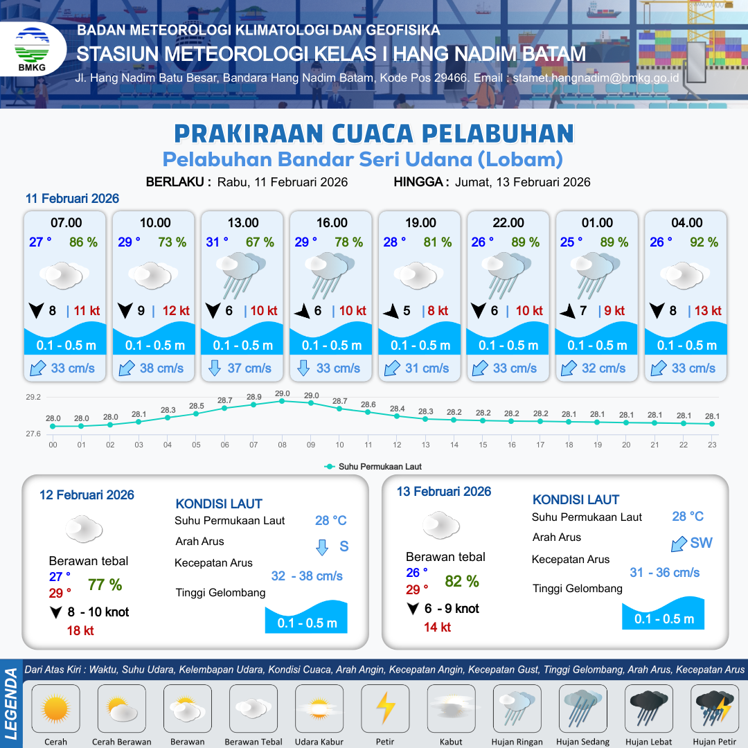 Prakiraan Cuaca Pelabuhan Pelabuhan Bandar Seri Udana (Lobam)