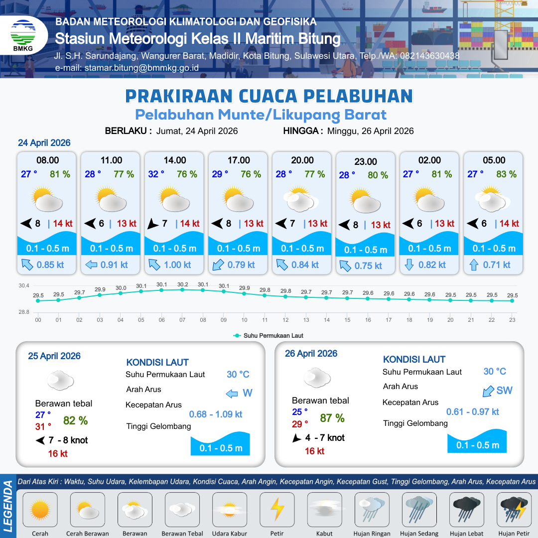 Prakiraan Cuaca Pelabuhan Pelabuhan Munte/Likupang Barat
