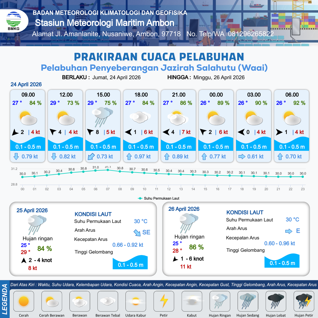 Prakiraan Cuaca Pelabuhan Pelabuhan Penyeberangan Jazirah Salahutu (Waai)