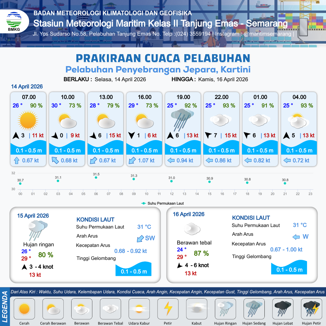Prakiraan Cuaca Pelabuhan Pelabuhan Penyebrangan Jepara, Kartini