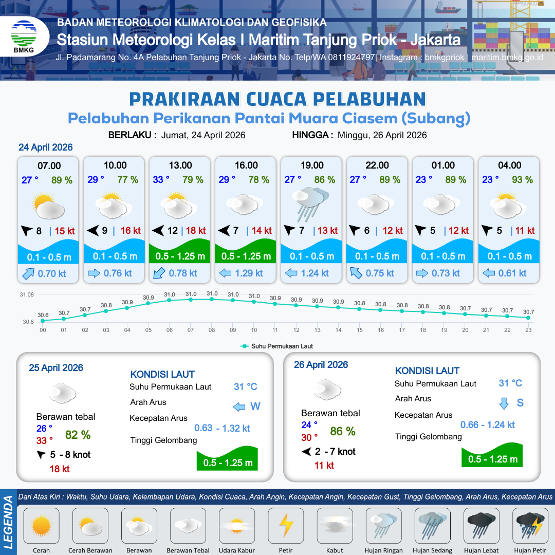 Prakiraan Cuaca Pelabuhan Pelabuhan Perikanan Pantai Muara Ciasem (Subang)
