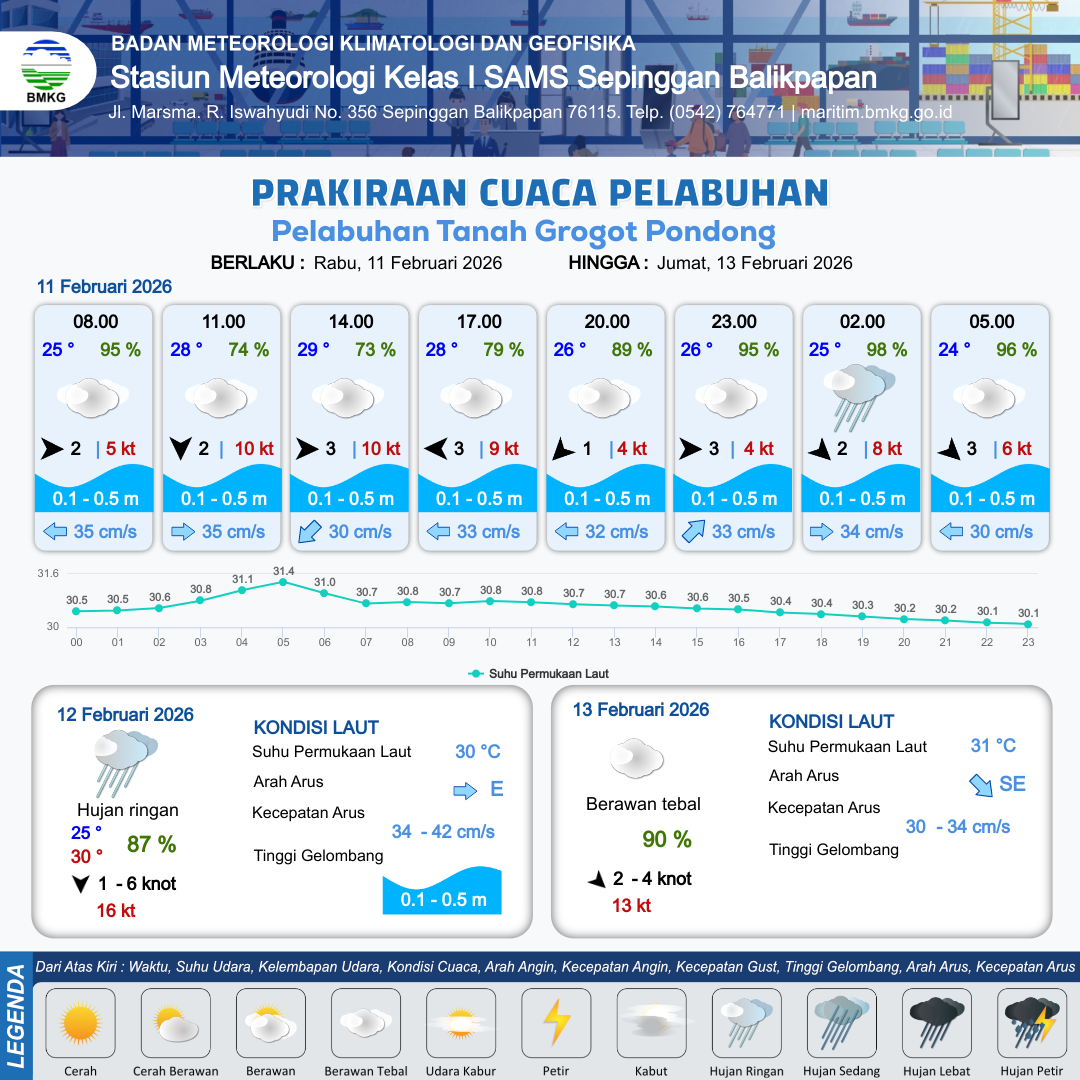 Prakiraan Cuaca Pelabuhan Pelabuhan Tanah Grogot Pondong