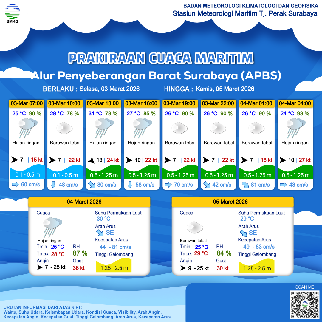 Prakiraan Cuaca Perairan Alur Penyeberangan Barat Surabaya (APBS)