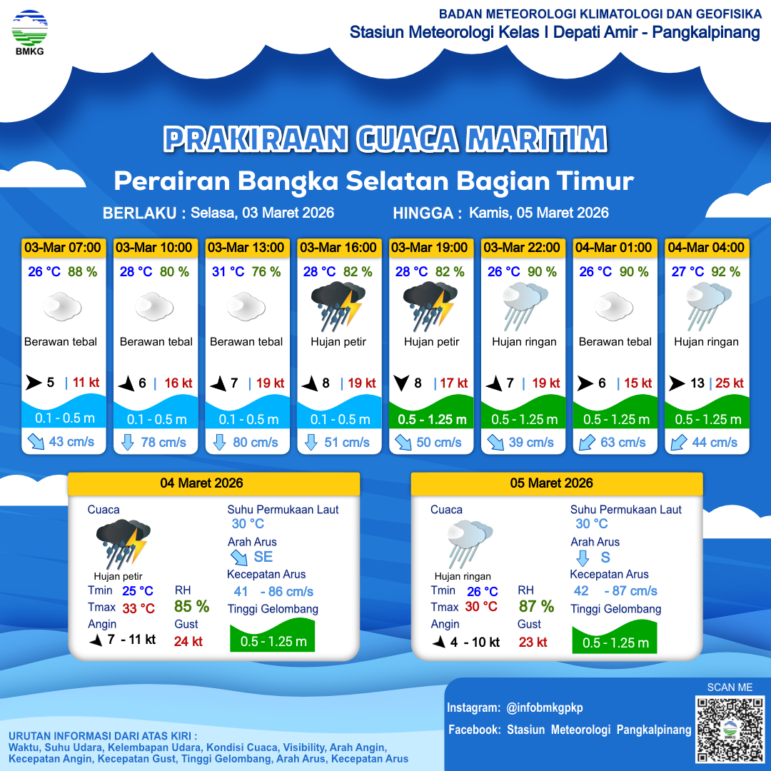 Prakiraan Cuaca Perairan Perairan Bangka Selatan Bagian Timur