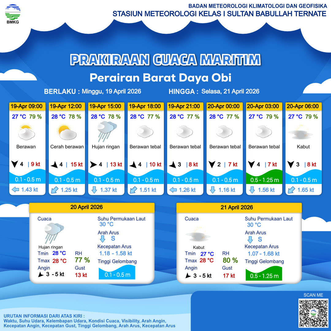 Prakiraan Cuaca Perairan Perairan Barat Daya Obi
