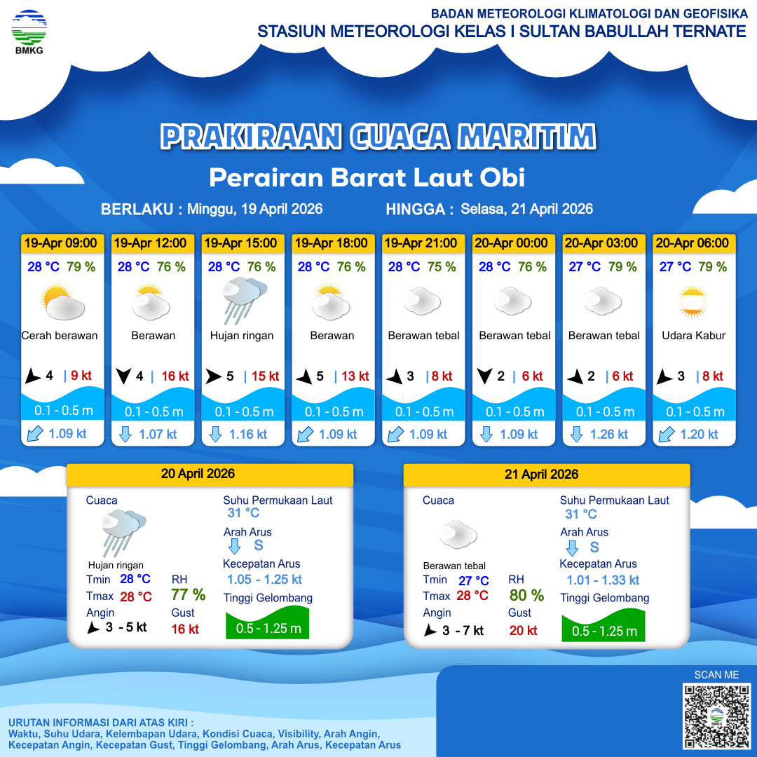 Prakiraan Cuaca Perairan Perairan Barat Laut Obi