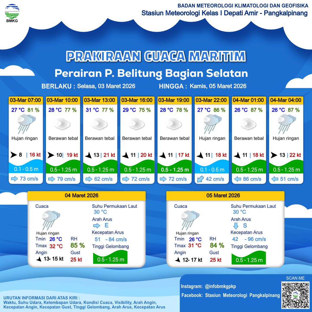 Prakiraan Cuaca Perairan Perairan P. Belitung Bagian Selatan
