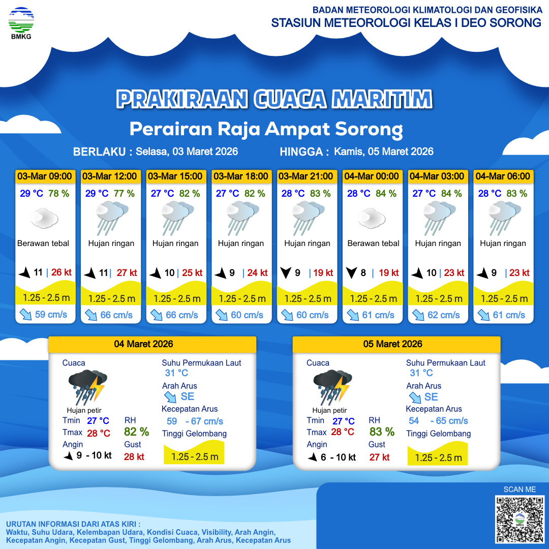 Prakiraan Cuaca Perairan Perairan Raja Ampat Sorong