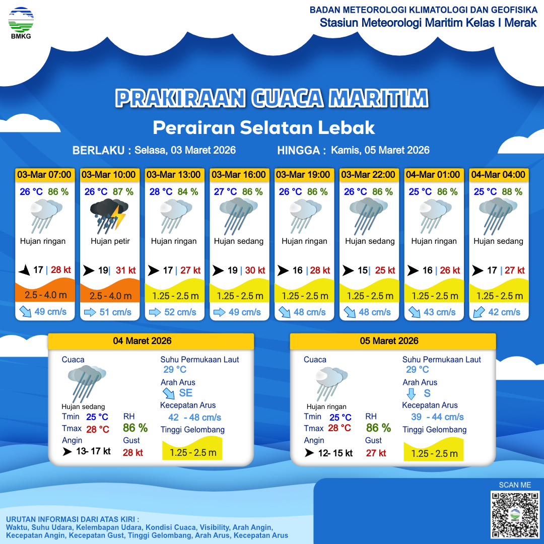 Prakiraan Cuaca Perairan Perairan Selatan Lebak