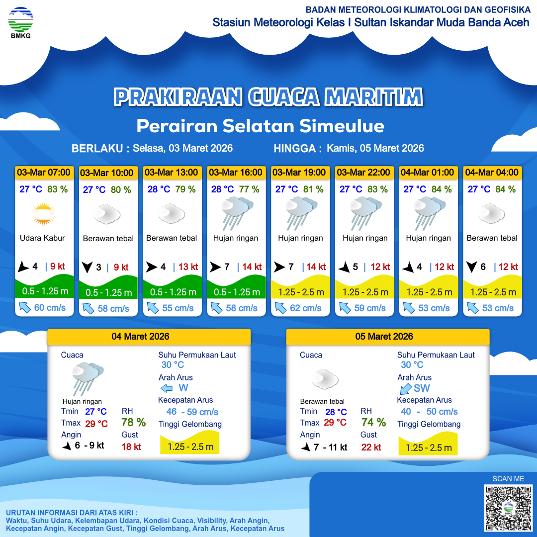 Prakiraan Cuaca Perairan Perairan Selatan Simeulue