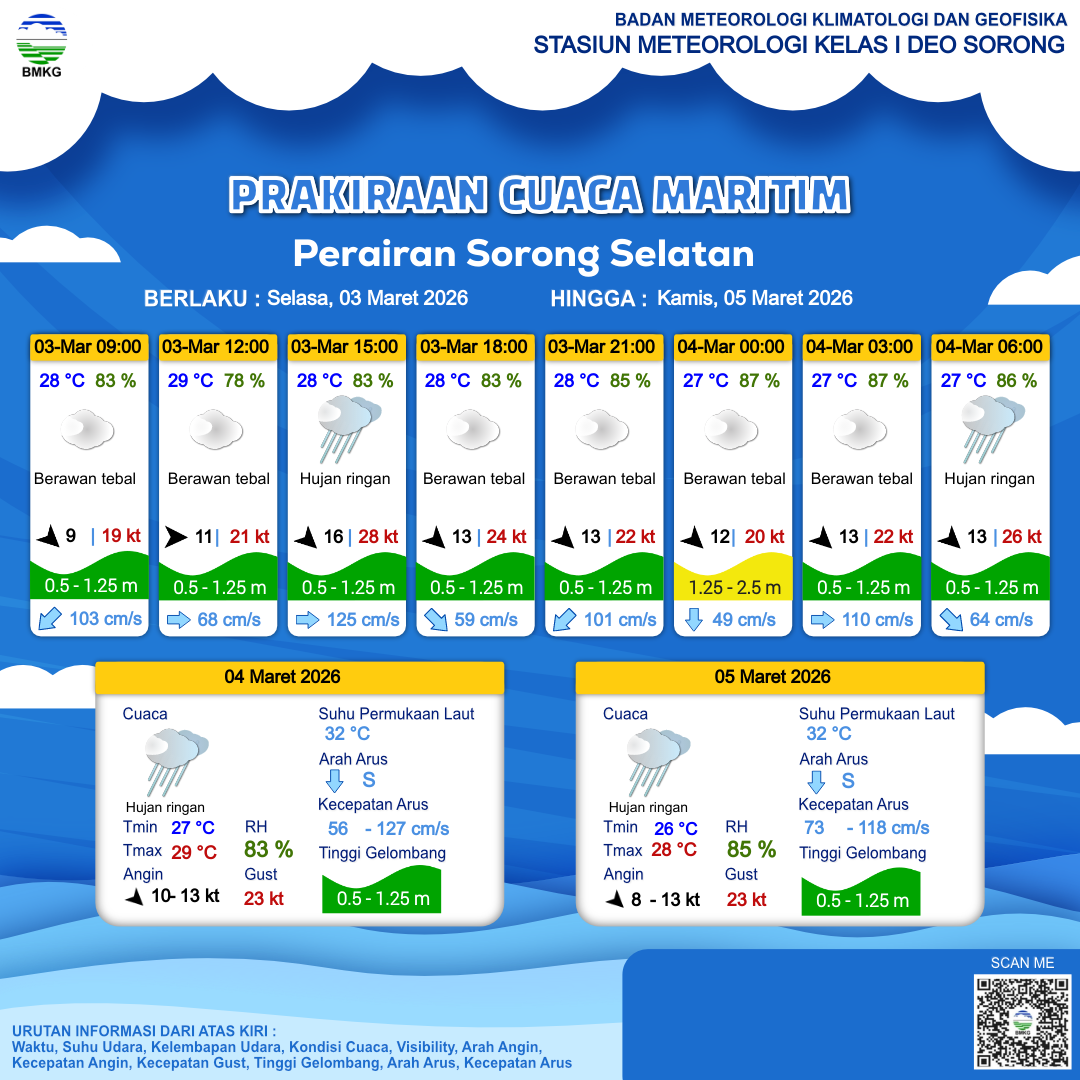 Prakiraan Cuaca Perairan Perairan Sorong Selatan