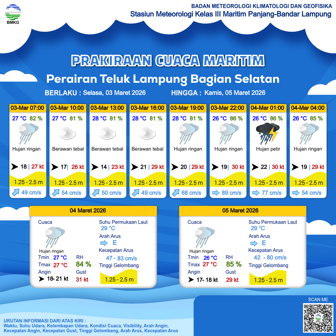 Prakiraan Cuaca Perairan Perairan Teluk Lampung Bagian Selatan