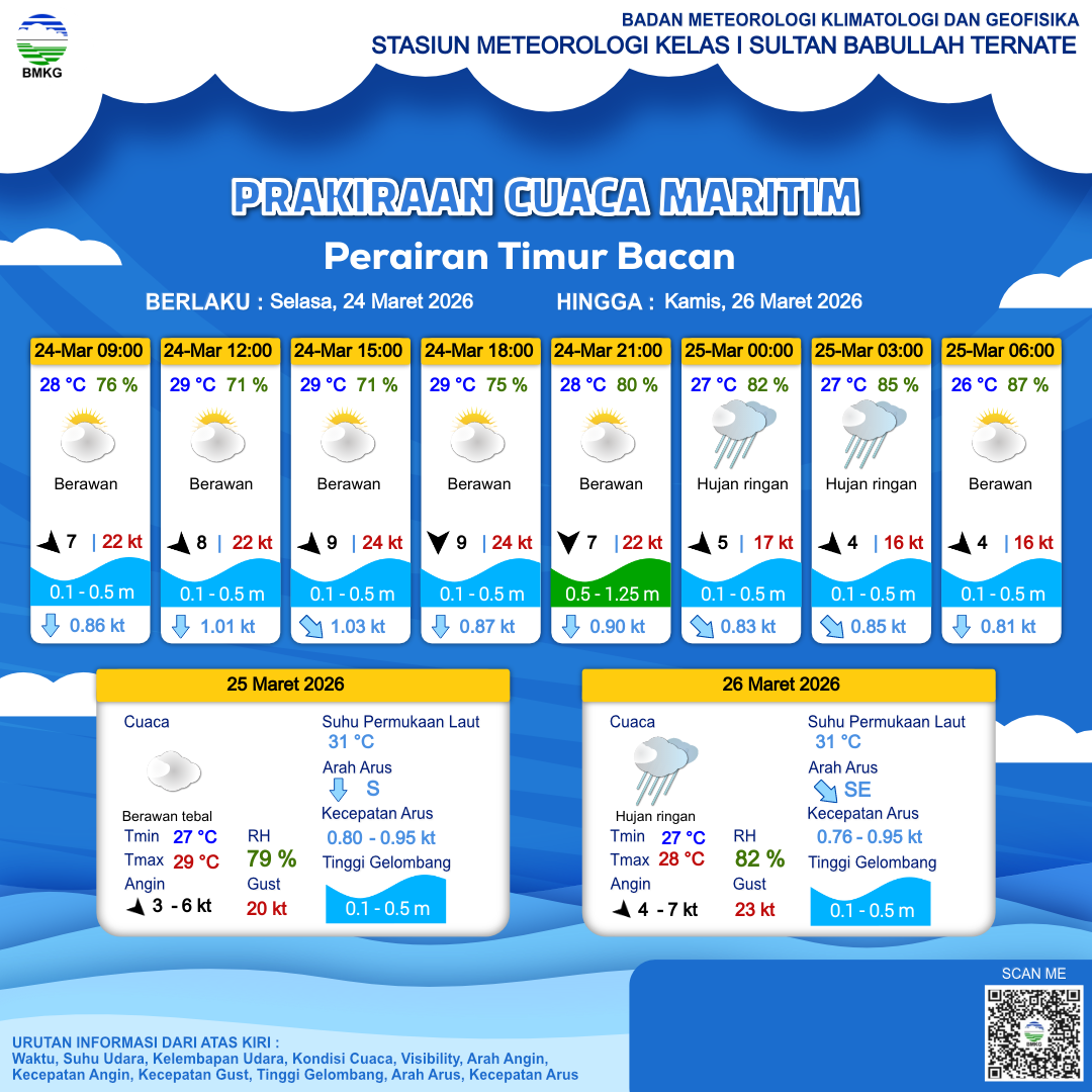 Prakiraan Cuaca Perairan Perairan Timur Bacan