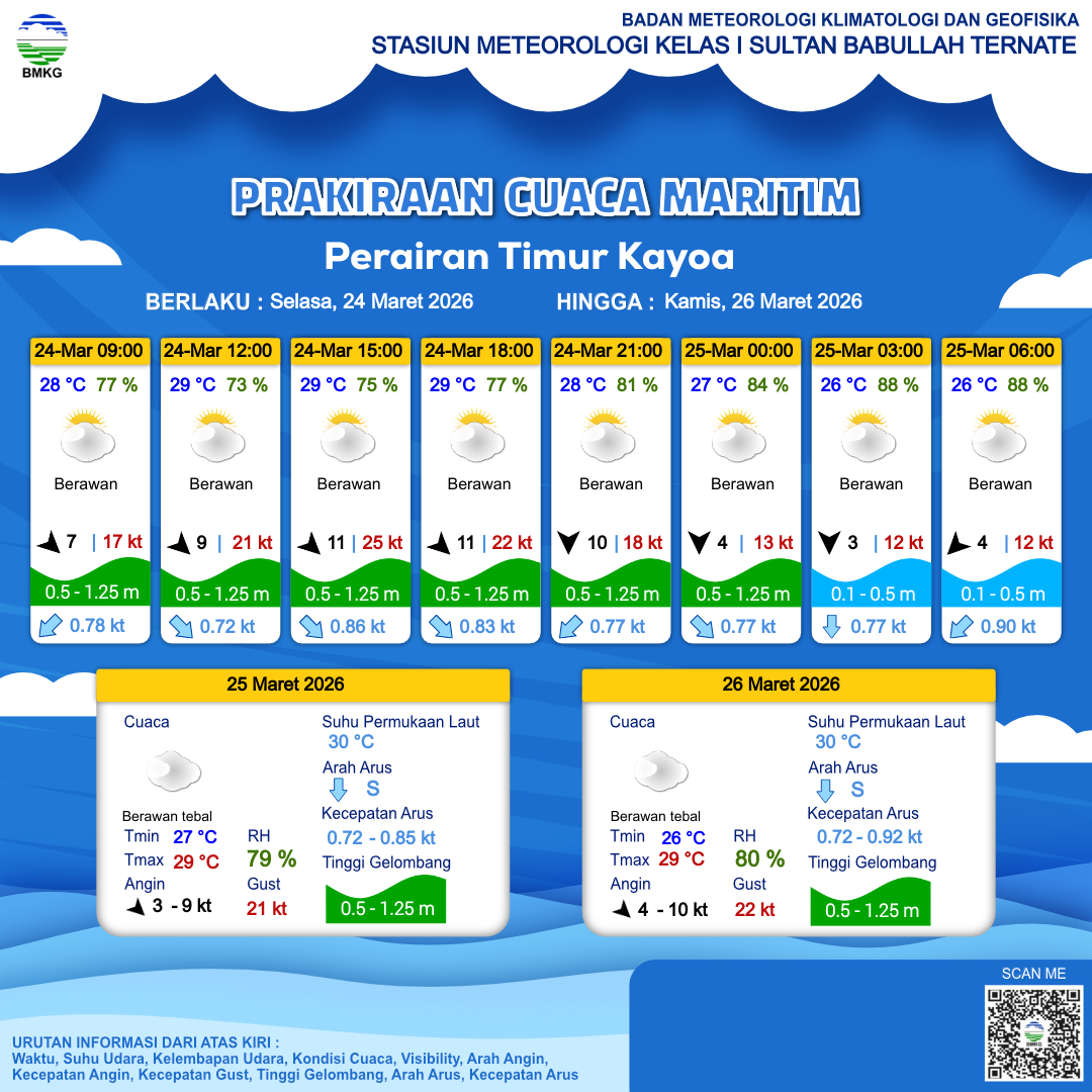 Prakiraan Cuaca Perairan Perairan Timur Kayoa