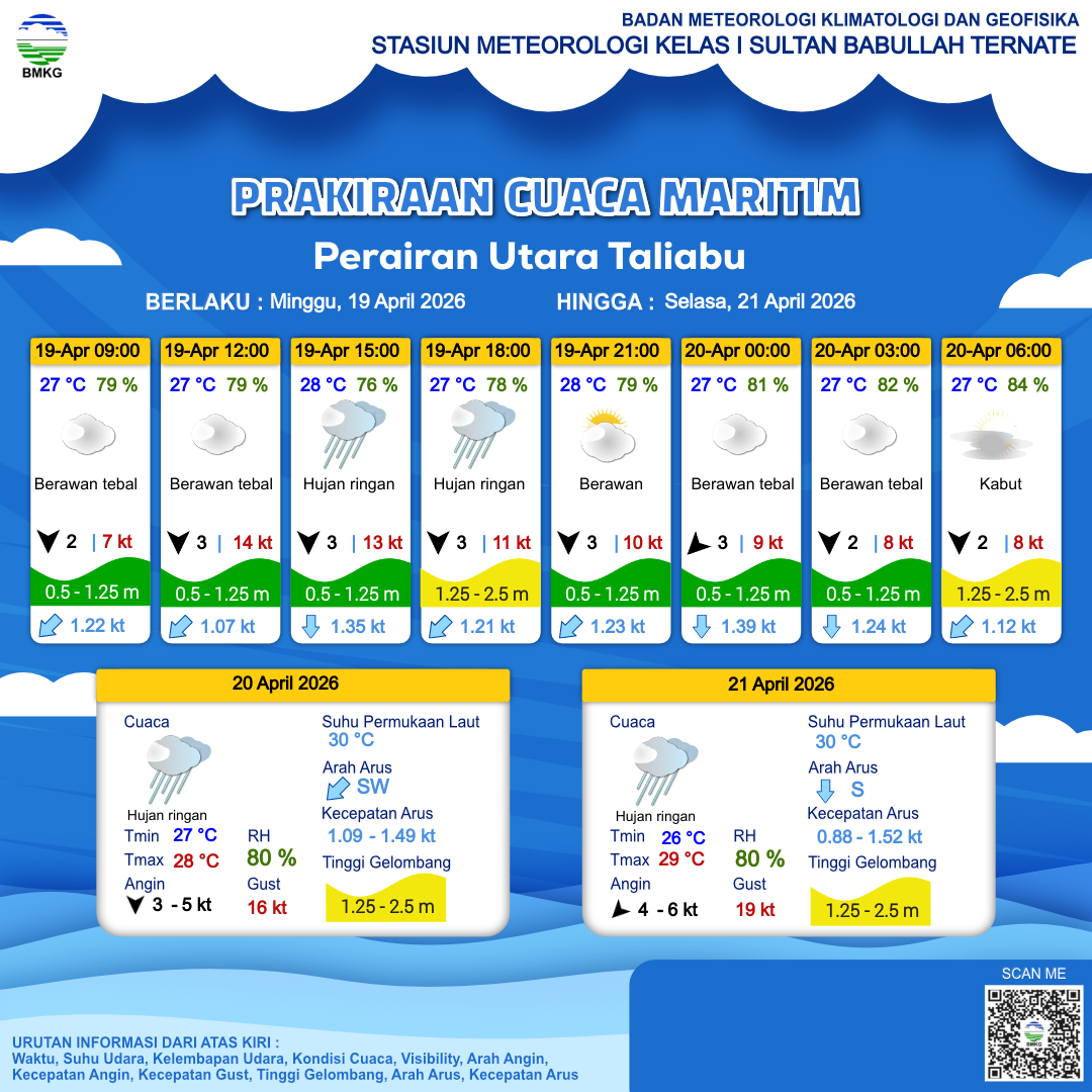 Prakiraan Cuaca Perairan Perairan Utara Taliabu
