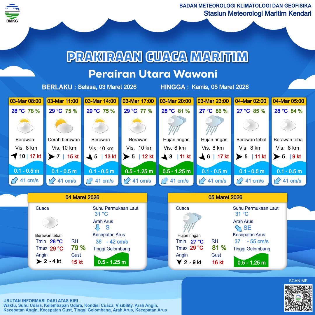 Prakiraan Cuaca Perairan Perairan Utara Wawoni