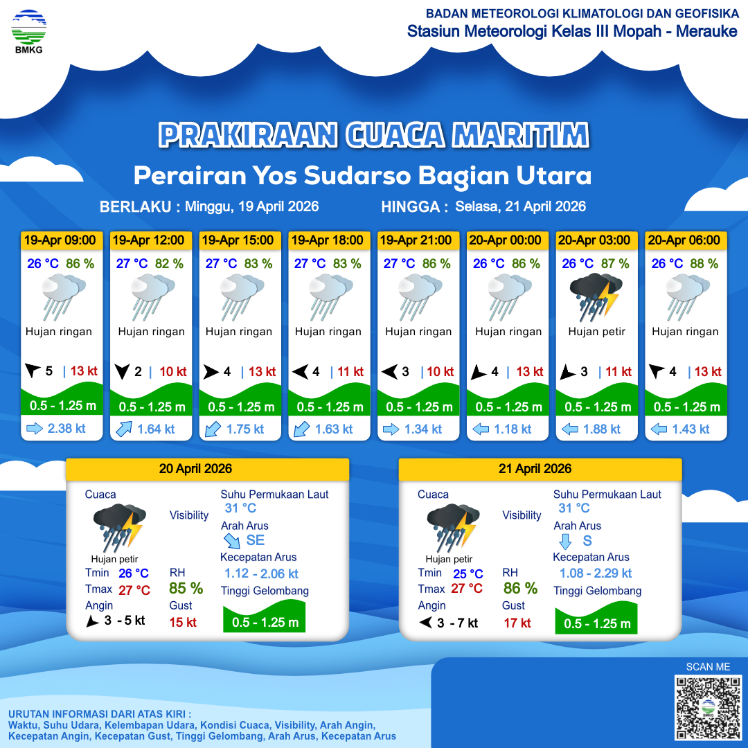 Prakiraan Cuaca Perairan Perairan Yos Sudarso Bagian Utara