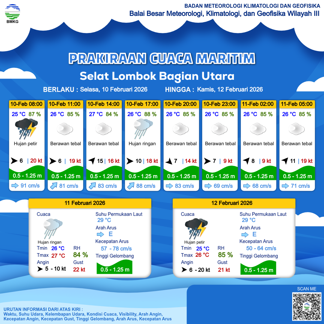 Prakiraan Cuaca Perairan Selat Lombok Bagian Utara
