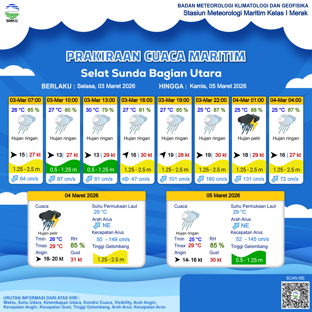 Prakiraan Cuaca Perairan Selat Sunda Bagian Utara
