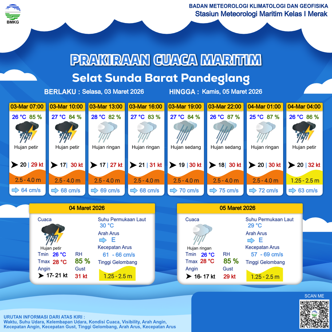 Prakiraan Cuaca Perairan Selat Sunda Barat Pandeglang
