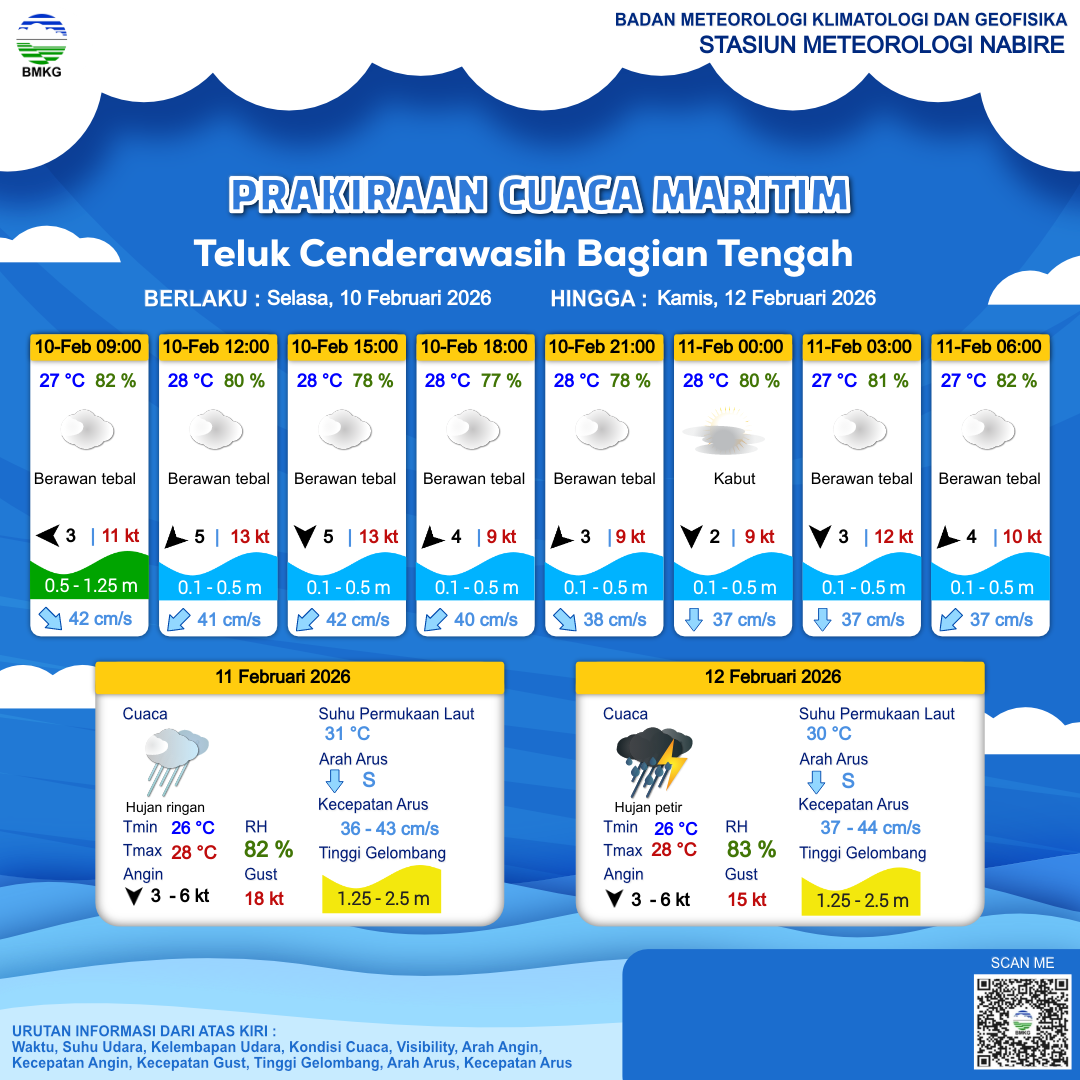 Prakiraan Cuaca Perairan Teluk Cenderawasih Bagian Tengah